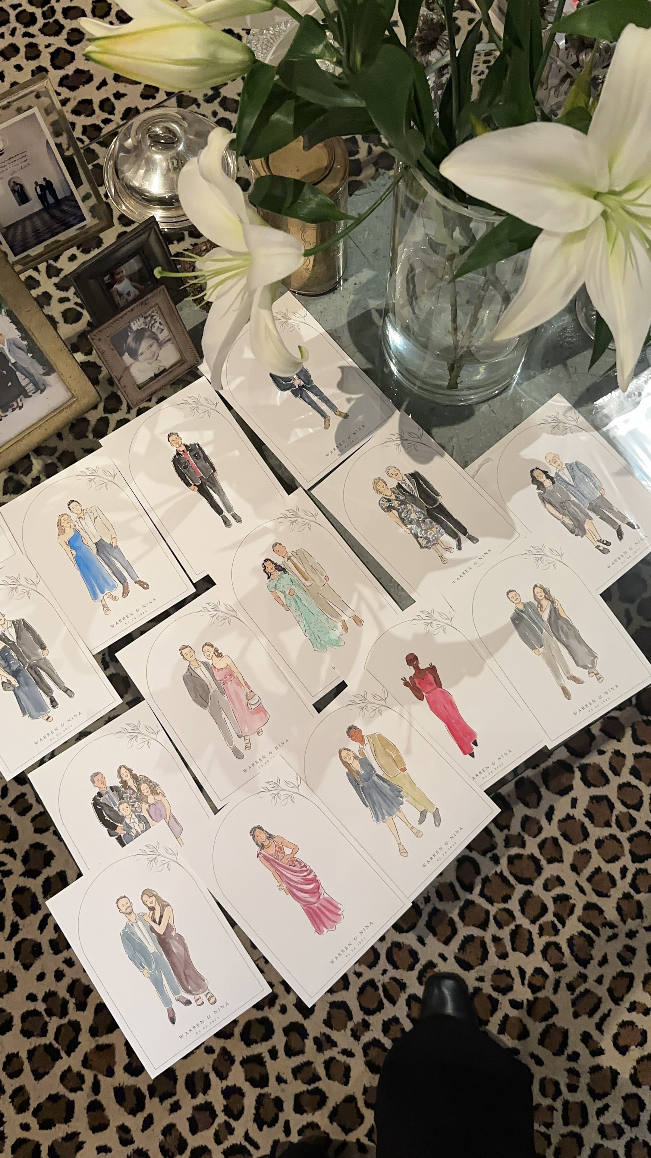 If you've booked additional guests beyond this, their illustrations will be completed after the wedding and sent to the newlyweds.
